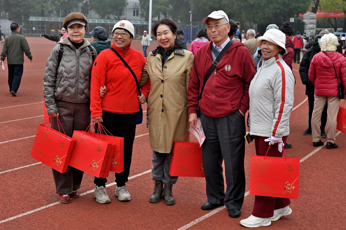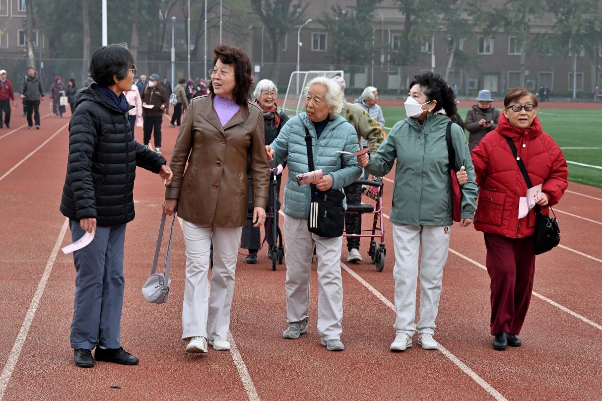本次健步走路线由集合处出发,途径操场南侧打卡点打卡,最终到达操场北门领取纪念品。老同志们个个精神抖擞、意气风发,有的健步疾行,有的闲庭漫步,有的互相搀扶,还有的拄拐杖或坐轮椅前行,许久未见的老同事和老朋友亲切寒暄、互道问候,共叙离退休生活的幸福点滴,畅谈往昔工作经历,尽情享受运动的乐趣和秋日的惬意,一路上充满欢声笑语,不时驻足拍照留念,现场洋溢着热烈温馨的氛围。