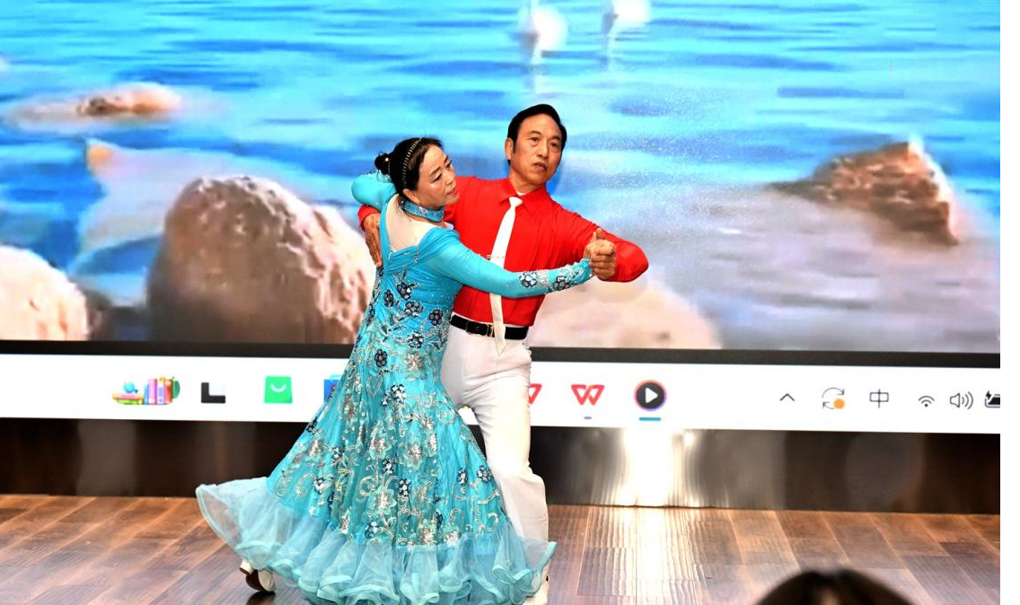 摄影协会《祝你平安》传递暖心祝福;离退休工作处全体工作人员朗诵的《霞光依旧炽热》,深情诉说对离退休职工的敬意与牵挂;京剧组《岳母刺字》字正腔圆,尽显传统艺术魅力;乒乓球队、台球队跨界演绎《七律长征》,尽显大气磅礴;交谊舞队《情迷》舞步轻盈婉转,民乐队《喜洋洋的幸福年》则以欢快旋律将现场气氛推向高潮。