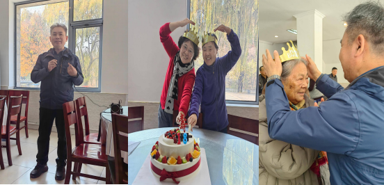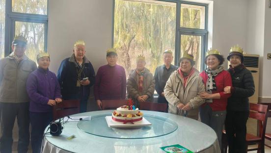 已近中午,老同志们在当地餐厅共进午餐。席间,学院特别为参加活动的下半年过生日的离退休老师们举办了一场温馨的集体生日会。82岁的退休教师周玉芬作为本次生日会上年龄最长的老同志,在大家的祝福声中,由学院党委副书记苏鸿亲自为寿星佬们逐一佩戴生日帽、送上生日的祝福,他表示:“老同志们是学院发展的亲历者和贡献者,学院始终牵挂着大家的生活。希望今天的生日会能让大家感受到学院家的温暖,并祝愿各位老师健康长寿、幸福安康。”