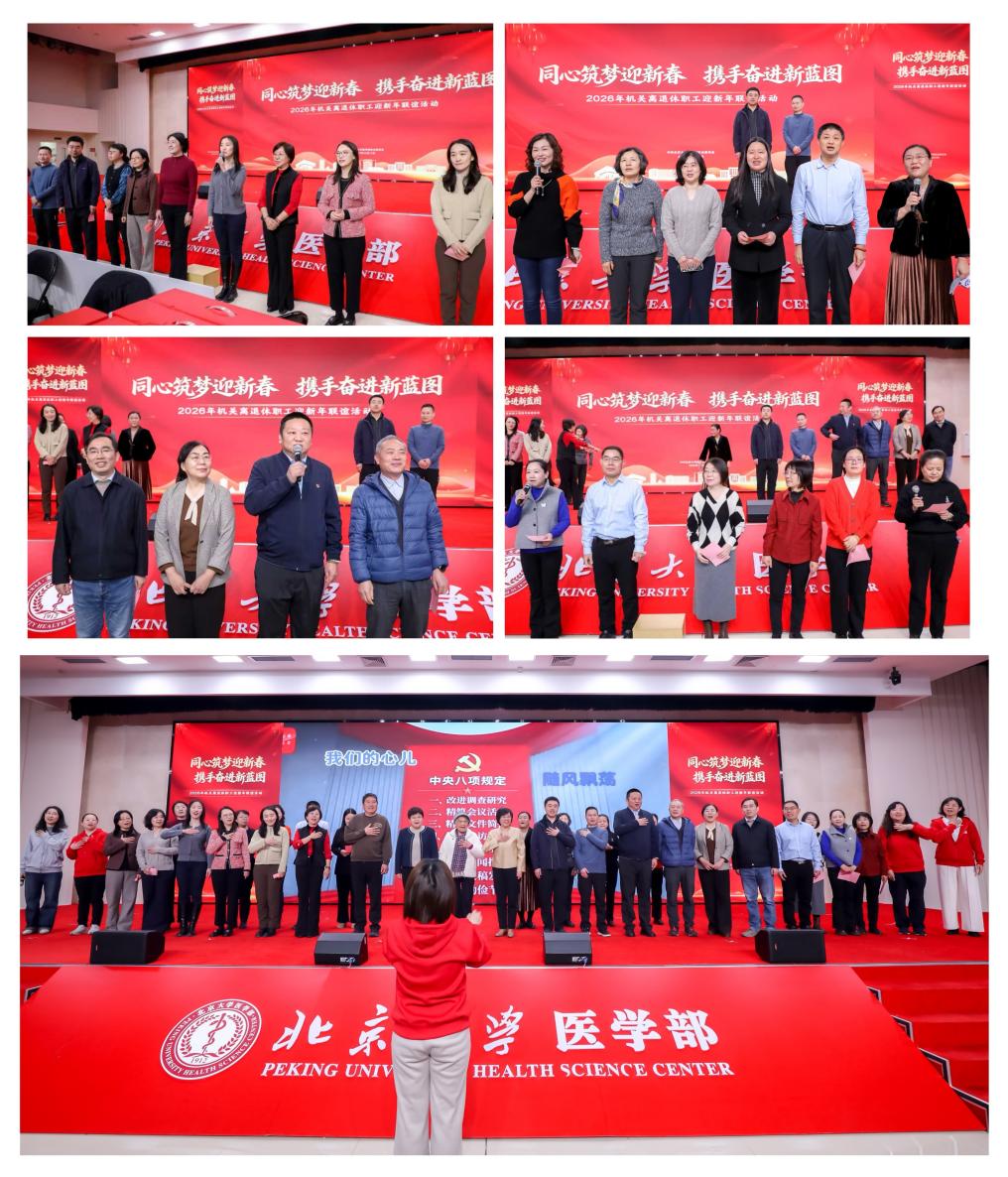 本次联谊活动融合红毯仪式、文艺演出、互动交流等形式,传递组织关怀,凝聚银龄力量,机关退休教职工们在新年的欢聚中共同展望北大医学高质量发展新图景,在红毯的新春主题前,与故友重逢合影,互寄新年祝福。