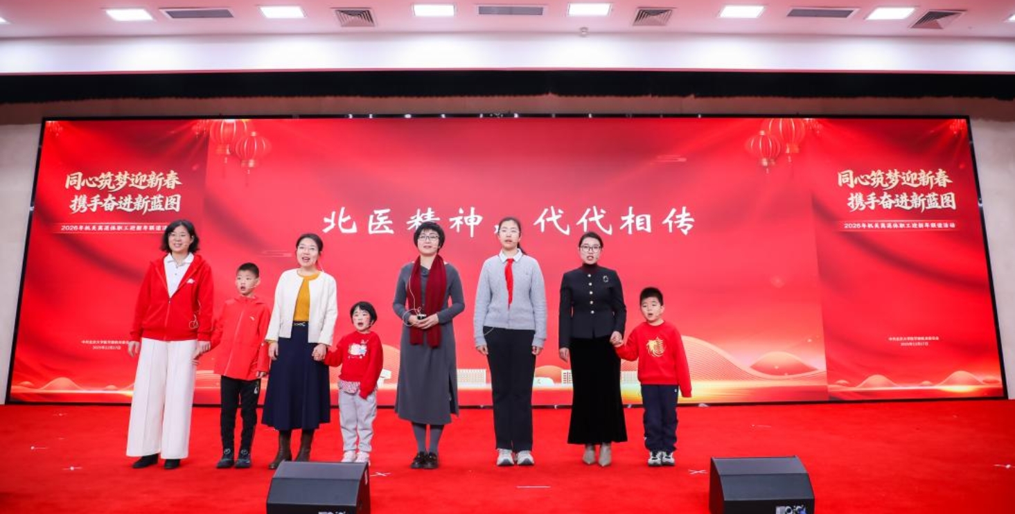 机关校史讲解团代表及子女在亲子朗诵《鉴往知来 薪火相传》中,以童声演绎校史故事,生动体现北大医学精神的赓续与家风传承。退休教职工合唱团以一曲《山楂树》,以其深情的旋律和动人的歌词,诉说美好的青春岁月。医学图书馆职工代表表演原创舞台剧《烛照秦川——徐诵明与西北联大》,重温抗战精神,再现北大医学人热血沸腾的难忘记忆。医学部退休职工花样年华模特队的《扶光·共此程》,以优雅风姿展现岁月积淀的从容之美,歌颂朋友们一路相伴的真挚友谊。主持人们共同带来了令人耳目一新的新春魔术,变幻出“百福图”与丙午马年惊喜,引发现场阵阵喝彩。