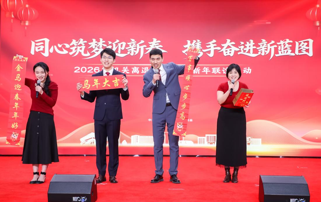 朱树梅、王军为代表党委为机关全体离退休职工送上新年寄语,祝愿老师们在新的一年中,身体健康、平安幸福。各职能部门与直属单位领导们以含有“马”字的成语传递新年祝福。全体出席领导与离休党支部、机关党委委员、青年代表合唱《我们的生活充满阳光》,表达为祖国贡献出青春和力量的坚定决心,共同祝愿未来的生活更加温暖、美好。
